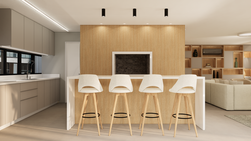 Neste apartamento, a paleta neutra e acolhedora se une à madeira natural, às texturas suaves e à iluminação cuidadosamente planejada. Cada detalhe foi pensado para criar um ambiente elegante e atemporal, onde a leveza do design encontra a força dos materiais.